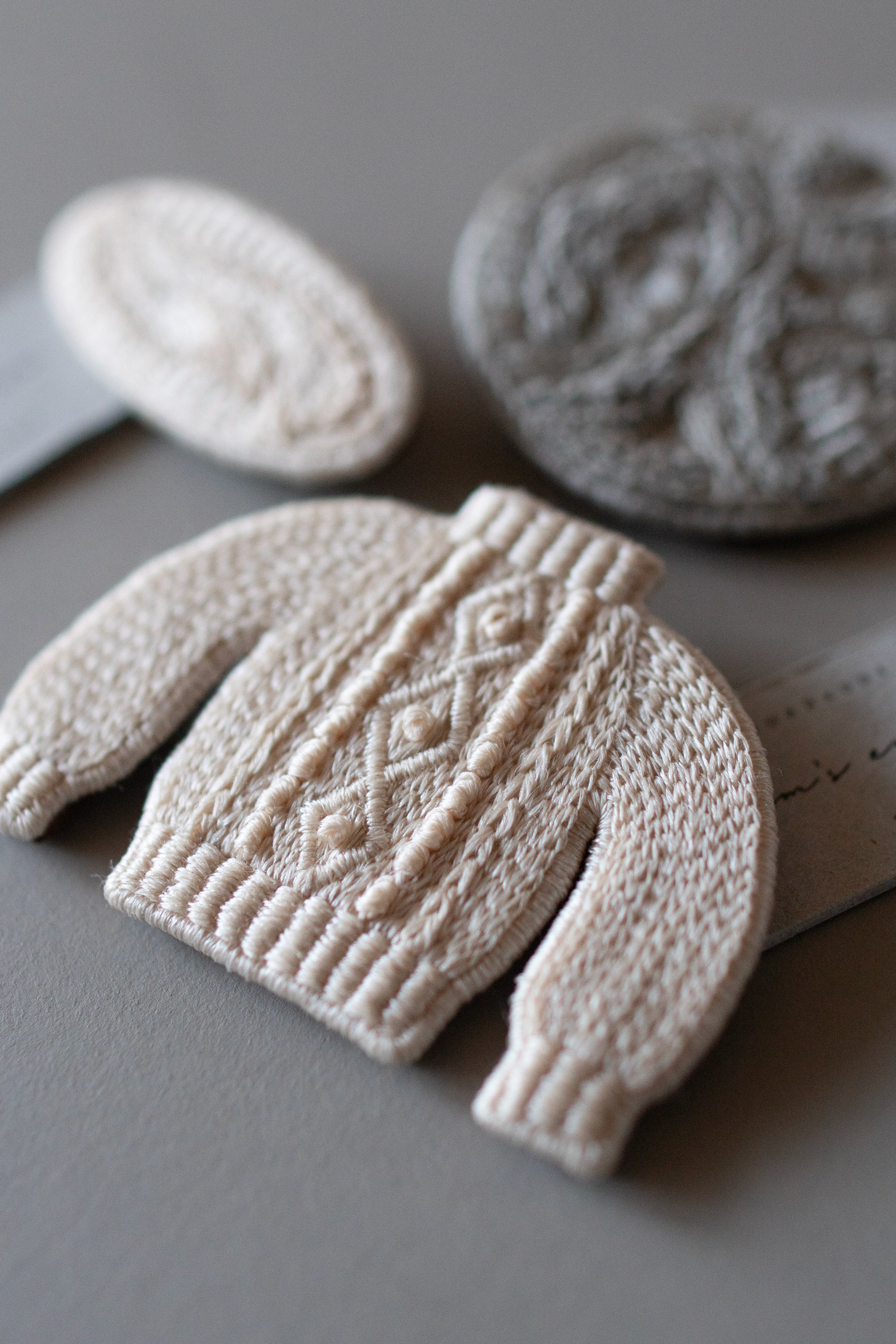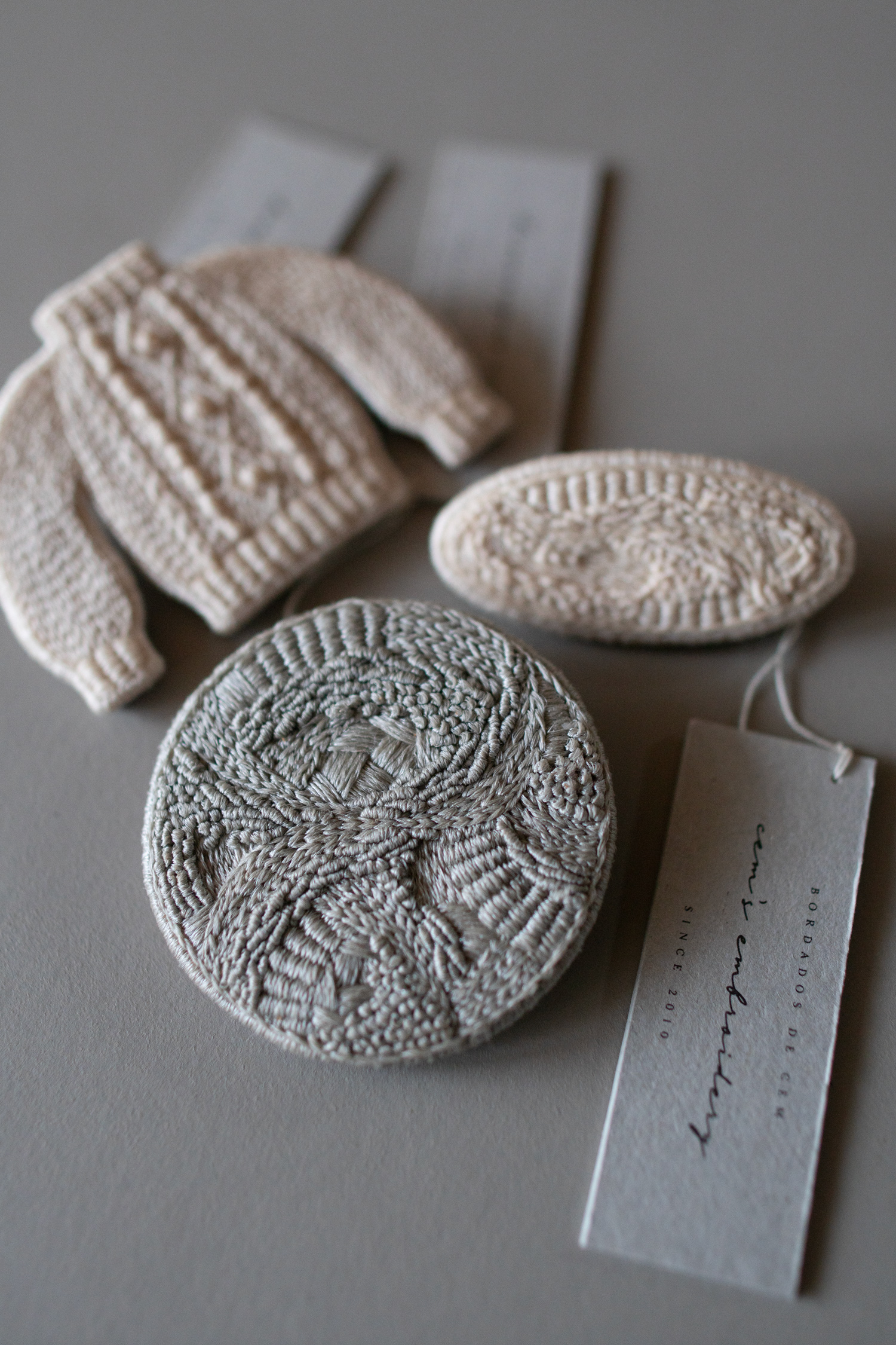・刺繍するにあたってワイルドシルク糸の使用は初めてでした。普段使っているコットン刺繍糸との使用感や仕上がりの差がわかりやすいように、新作ではなくいつも作っている作品を刺してみました。